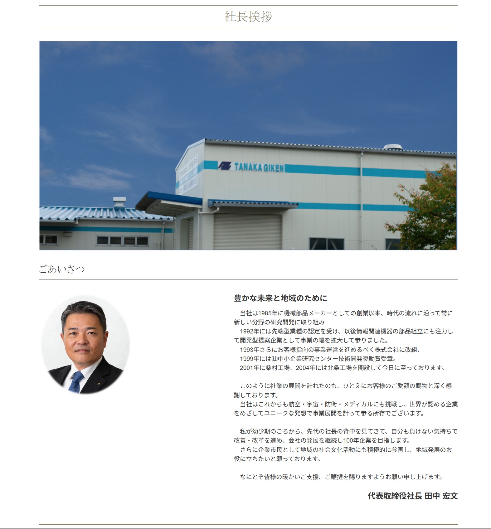 2025年11月1日 弊社新社長に田中宏文が就任致しました。